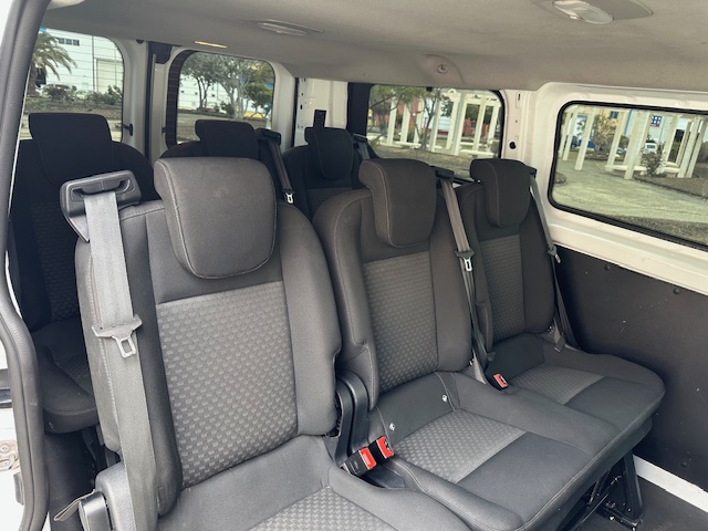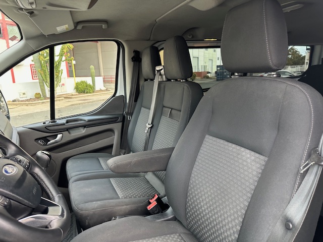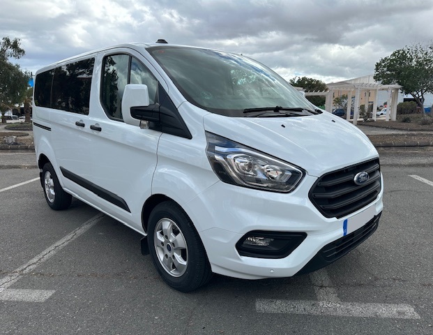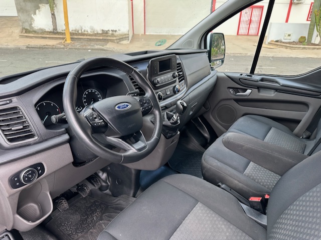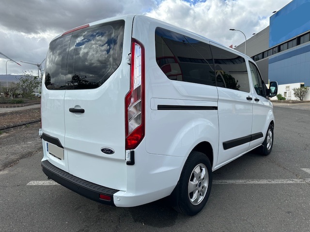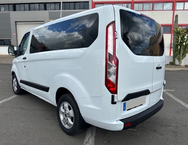 Ford Transit Custom 9 plazas L1H1 2.0 TDCI (Diesel) 130CV . Equipamiento: Dirección Asistida, Elevalunas Eléctrico, Cierre Centralizado, Aire Acondicionado, Sensores de Parking delanteros y traseros, Radio Bluetooth, Ordenador de abordo, Regulador-limitador de velocidad, Llantas Aleación, Cristales Laminados, Puerta Lateral, Sensores de parking delanteros y traseros. Mantenimiento al día.