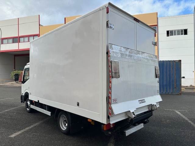 Nissan NT 400 Cabstar Plataforma motor ZD30 (Diesel) 3 plazas. Equipamiento: Dirección Asistida, Elevalunas Eléctrico, Cierre Centralizado, Radio con Bluetooth, Aire Acondicionado, Plataforma Trasera Dhollandia, Puerta acceso lateral Caja de carga. Mantenimiento al día. Matriculado 09/2018. Presenta pequeños detalles de carroceria debido al uso cotidiano.